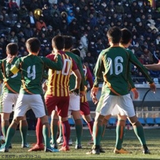 一方、長崎総科大附は往年の国見を彷彿とさせるフィジカル主体の相手DF裏を狙ったロングボールを主体に7番FW荒木が果敢に青森山田ゴールにプレッシャーをかけるも青森山田もゴールは譲らず。すると、今大会切れのあるプレーで2試合連続得点中の長崎10番FW安藤の個人技が輝きを放つ。ワンターンでDF2人を置き去りにし、さらにシュートフェイントを入れてもう1人を抜き右足を振り抜くとボールは見事にゴールネットに突き刺さりファインゴールとなる。